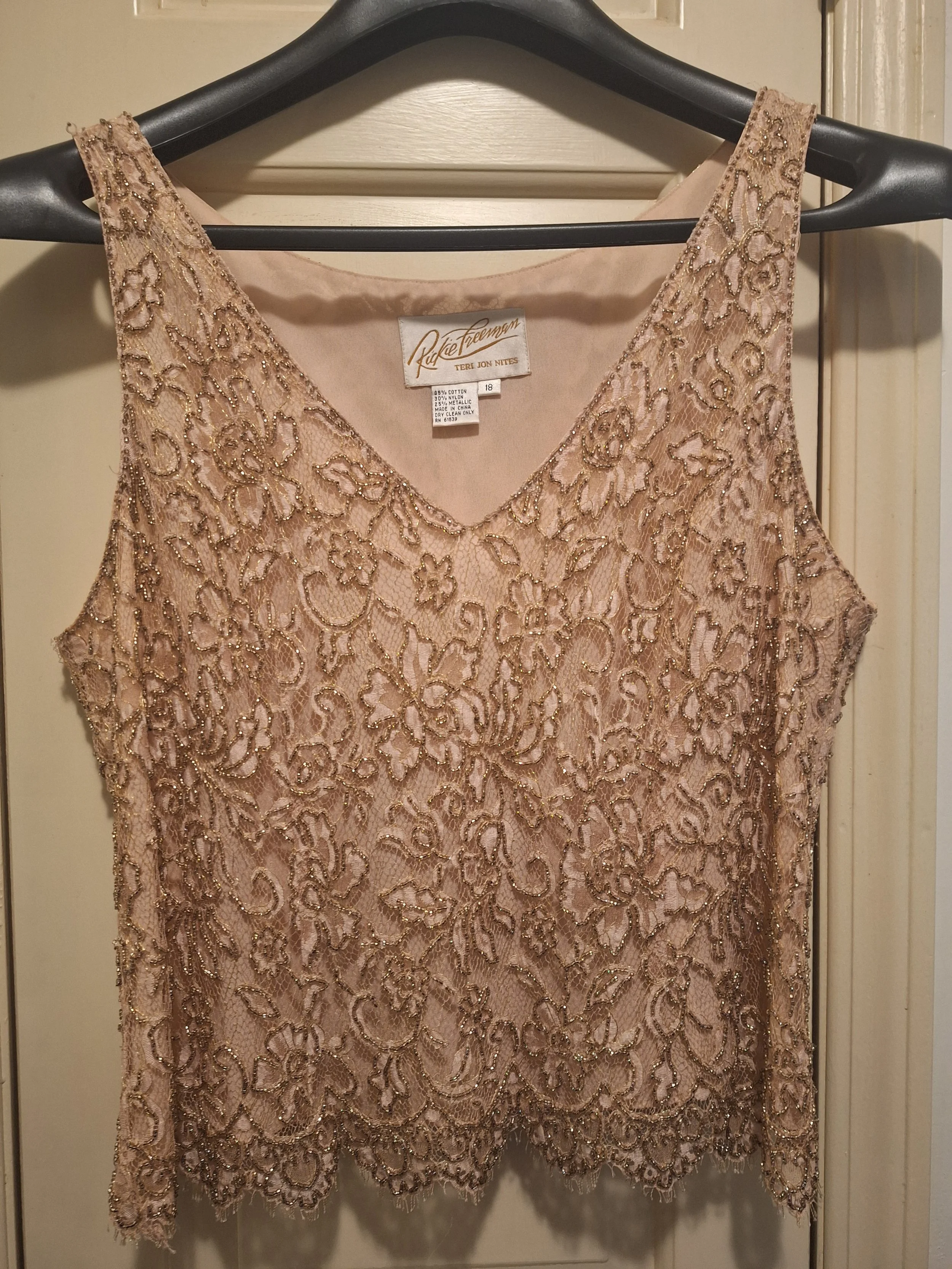 Store › Vintage Rickie Freeman Women's Party Top Pink Image 1 of 1 Vintage Rickie Freeman Women's Party Top Pink $10.00 Shell Pink , beautiful classic hand beaded lace lined, stretch but fitted, side zipper. Size: 18 Add To Cart Added! Shell Pink , beautiful classic hand beaded lace lined, stretch but fitted, side zipper. Size: 18